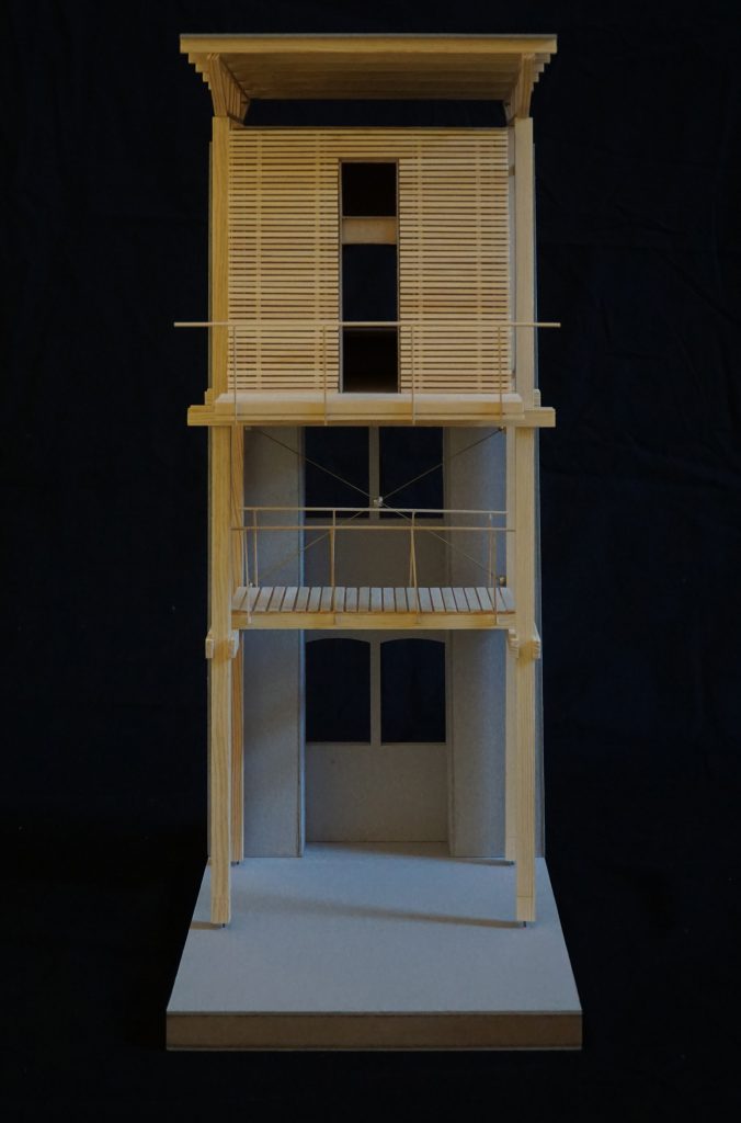 The design called “De Houde Tand” for the monastery aims to transform it into a multifunctional event location with overnight accommodation. The design extends over the chapel and includes the car park and courtyard. The chapel is divided into three horizontal levels: The lower levels serve as the main event spaces for concerts, exhibitions and more, while the upper level is designed as a gallery. In addition, there are living boxes for two people along the chapel walls, offering overnight accommodation. A floating roof is designed to protect the chapel from the elements, and the entire design is largely made of wood to create a warm atmosphere.