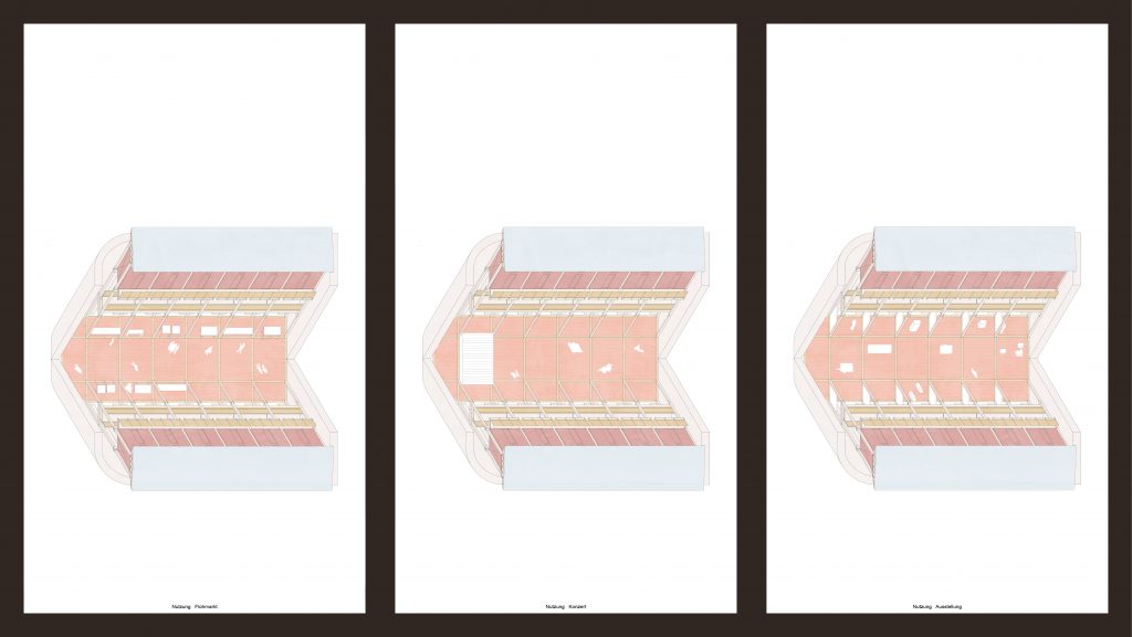 The design is characterised by a high degree of prefabrication, which facilitates assembly on site and shortens the construction time. The structure remains independent of the existing building and can be dismantled or reused in other locations, providing a sustainable solution. The structure of the design encourages different types of interactions, whether between many people at events or between individuals and the site itself, which wants to convey its own history.