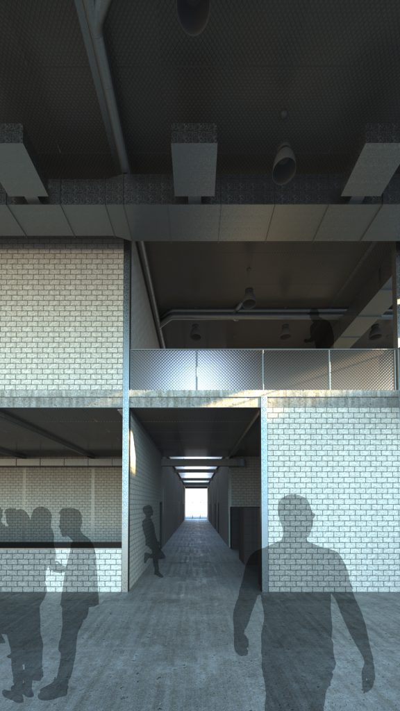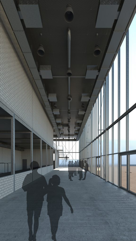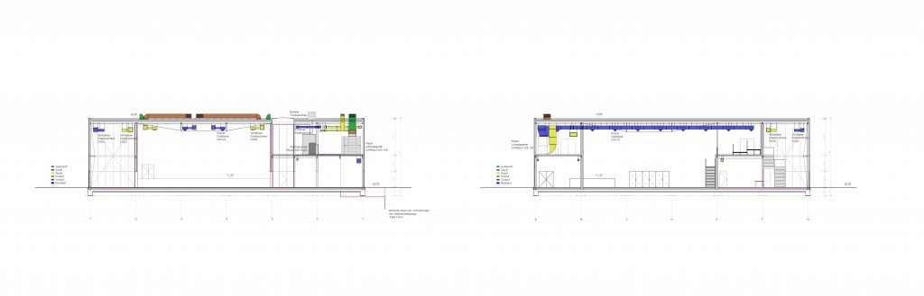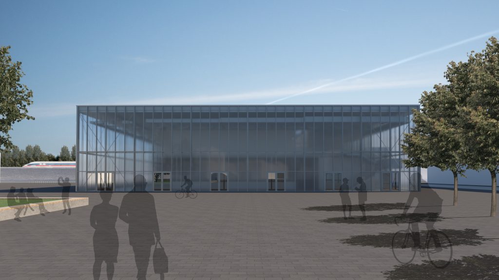 To complement the existing leisure facilities, the task was to design a “live music hall” in the industrial area in the west of the city. The site borders on the Kennedypark and is located in the immediate vicinity of the railroad tracks and the needle factory. The retention of an industrial shed with a shed roof results in an “L” shaped building area.