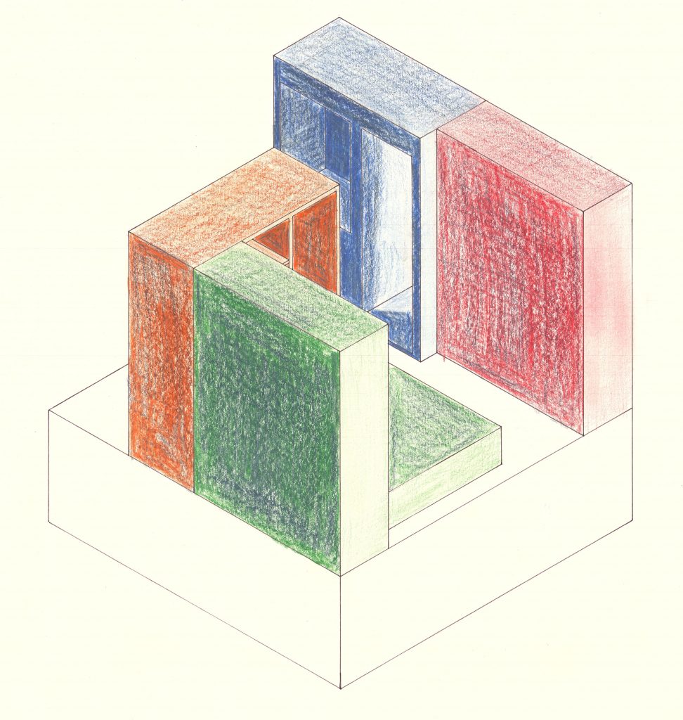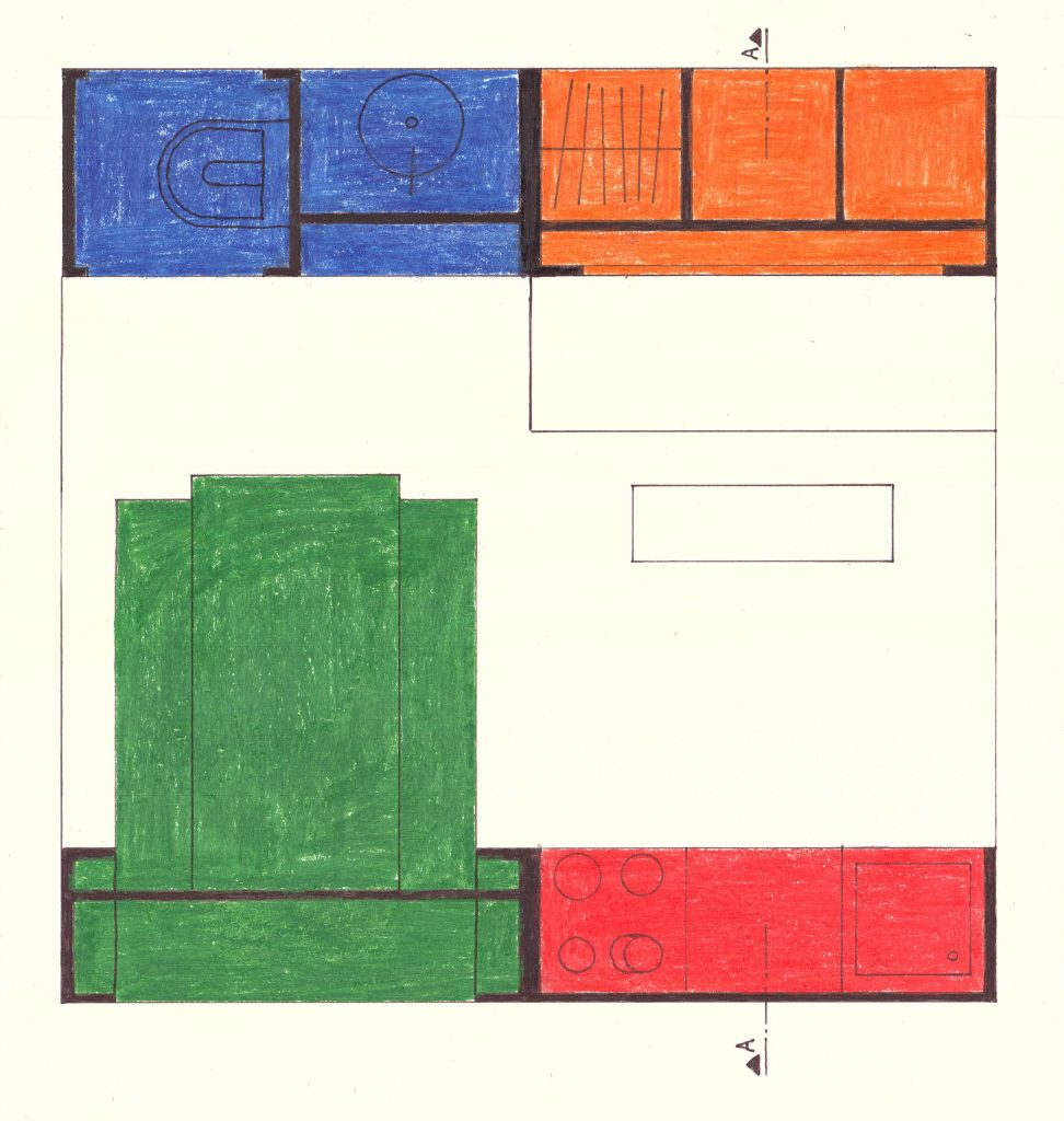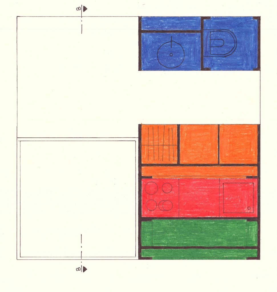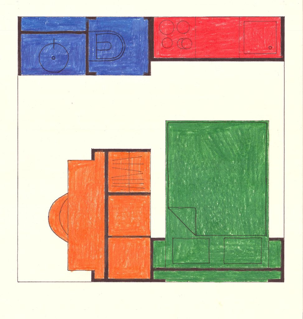 In the first exercise, the task was to design a mini home in a cuboid with edge lengths of 360cm. This should be tailored to oneself and include everyday needs (sleep, cook/eat, wash, work).